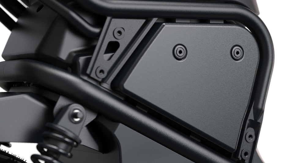 Es sieht vielleicht nur wie kleine Schraubenlöcher aus – aber sie eröffnen große Möglichkeiten. Der Moped hat 11 verstärkte Befestigungen, strategisch platziert für Zubehör und eigene Lösungen. Schrauben sind bei der Lieferung dabei, sodass Sie sofort mit dem Bauen beginnen können.