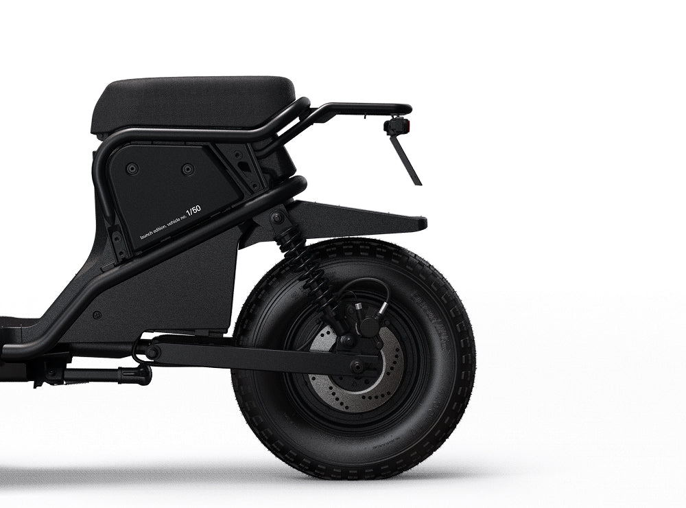 EPA-1 ist mit einem bürstenlosen Nabenmotor mit satten 2600W ausgestattet – dezent im Hinterrad integriert und in mattem Schwarz lackiert, um sich ins Design einzufügen.